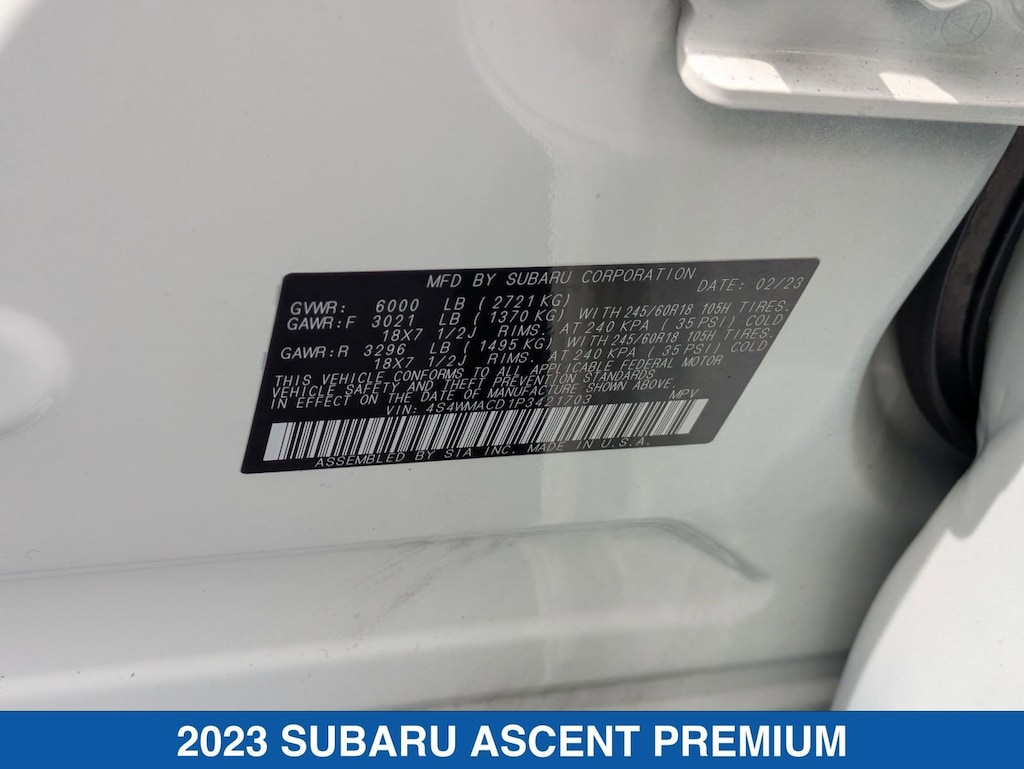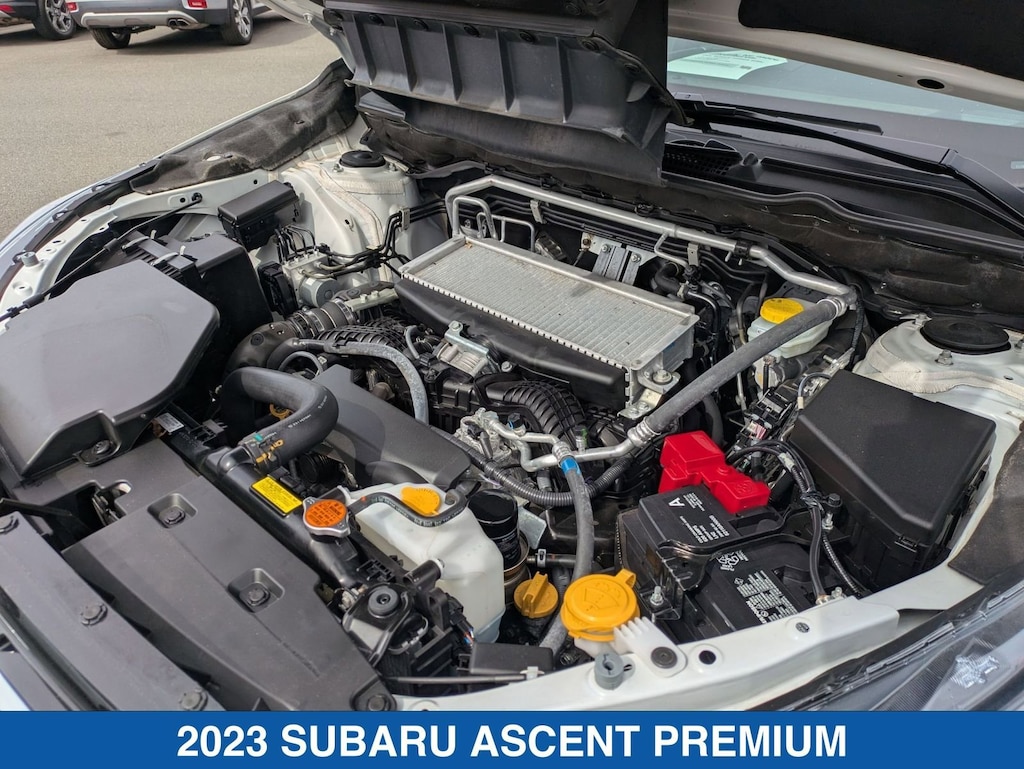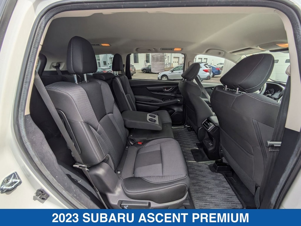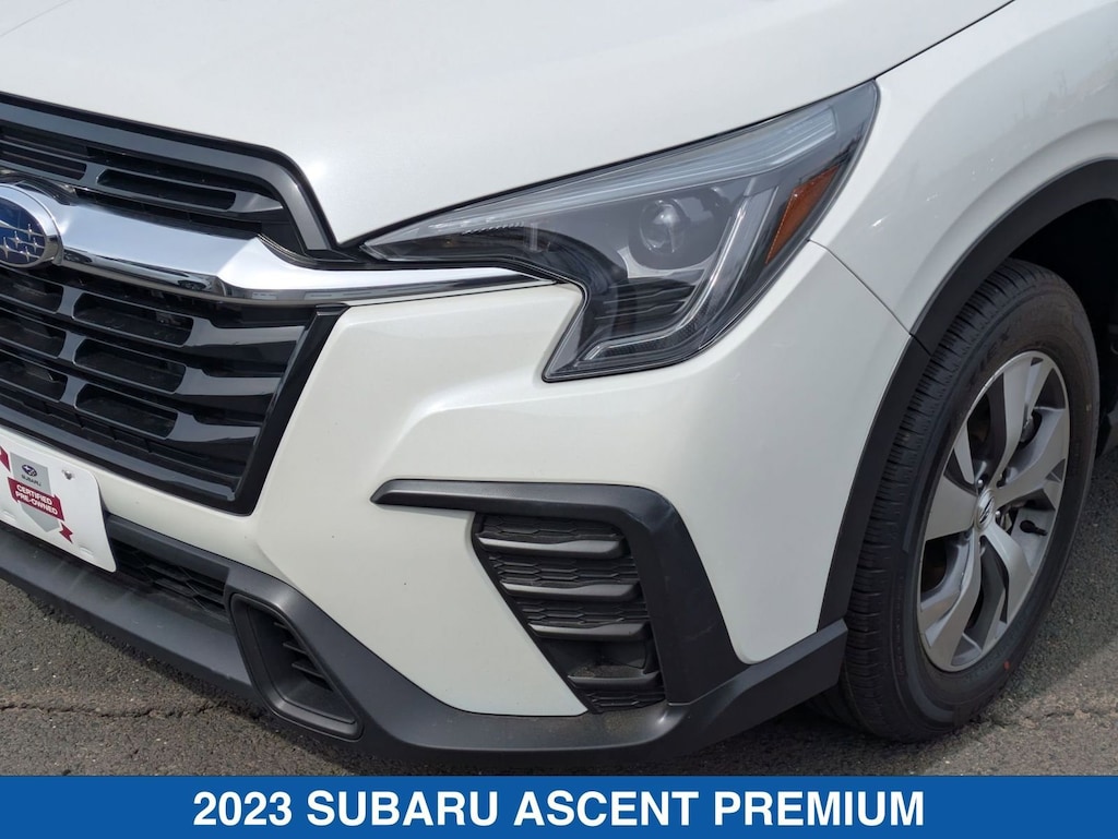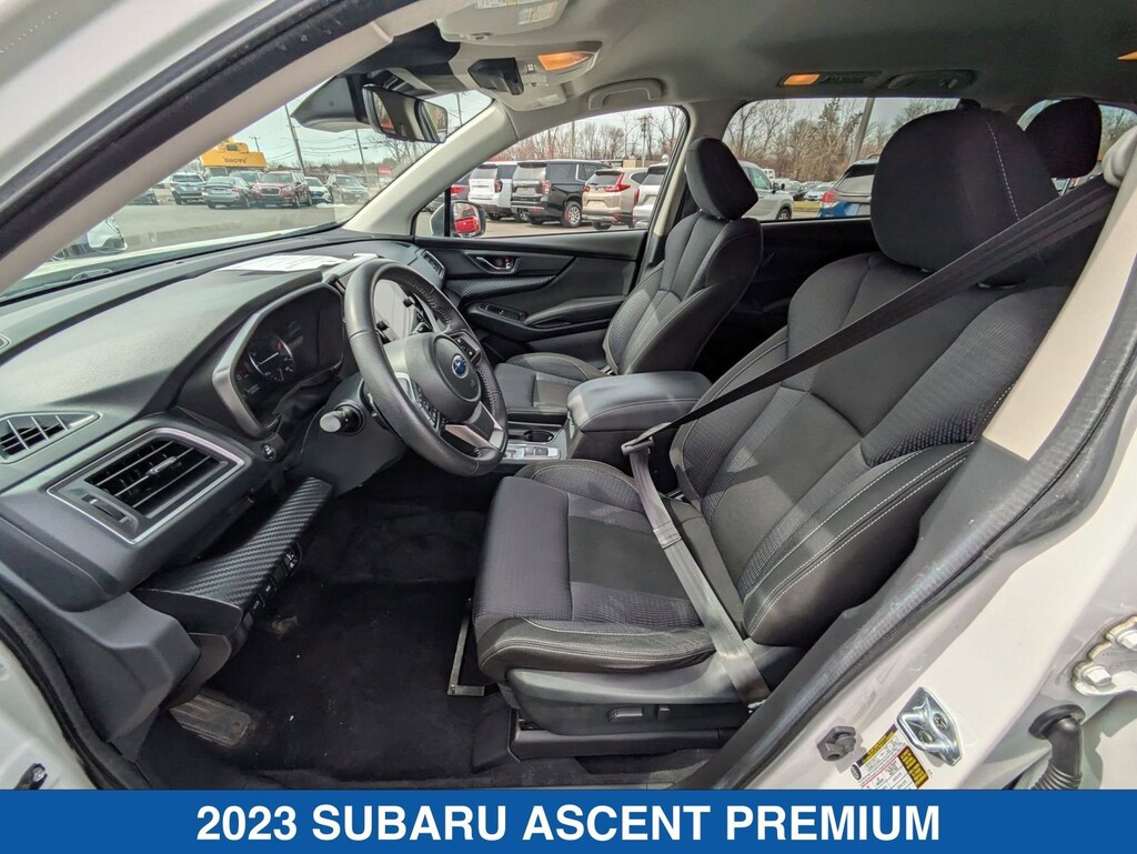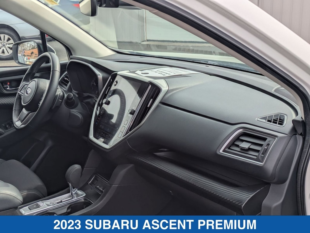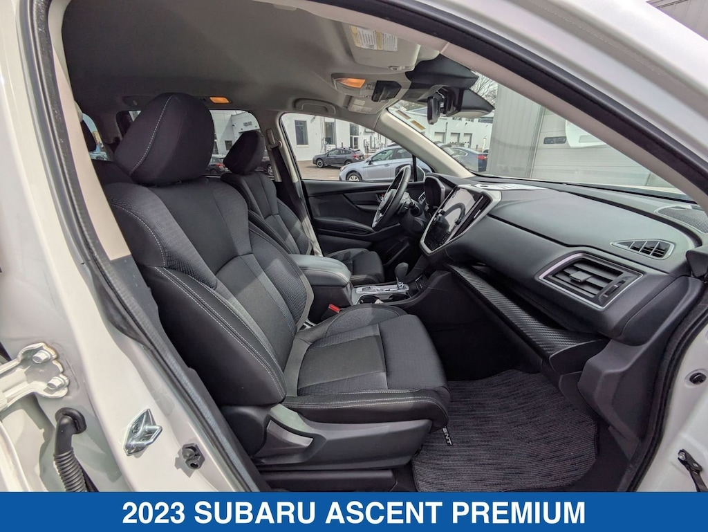 Crystal White Pearl 2023 Subaru Ascent Premium AWD Lineartronic CVT 2.4L 4-Cylinder DOHC 16V Ascent Premium, 4D Sport Utility, 2.4L 4-Cylinder DOHC 16V, Lineartronic CVT, AWD, Crystal White Pearl, Slate Black Cloth.