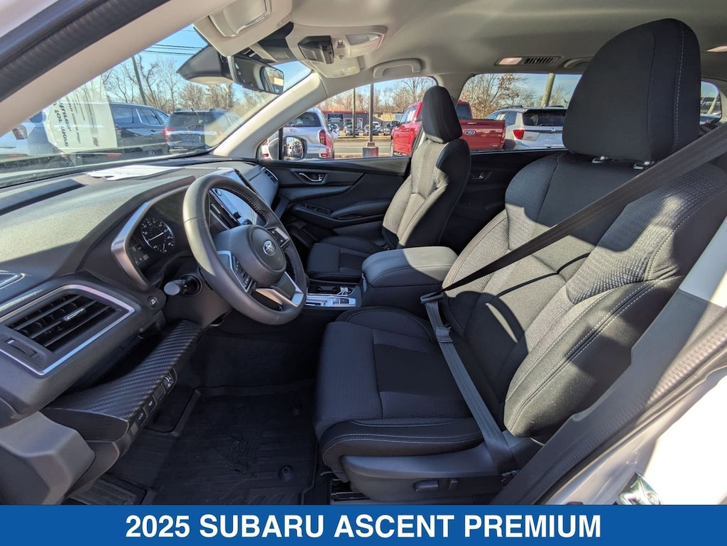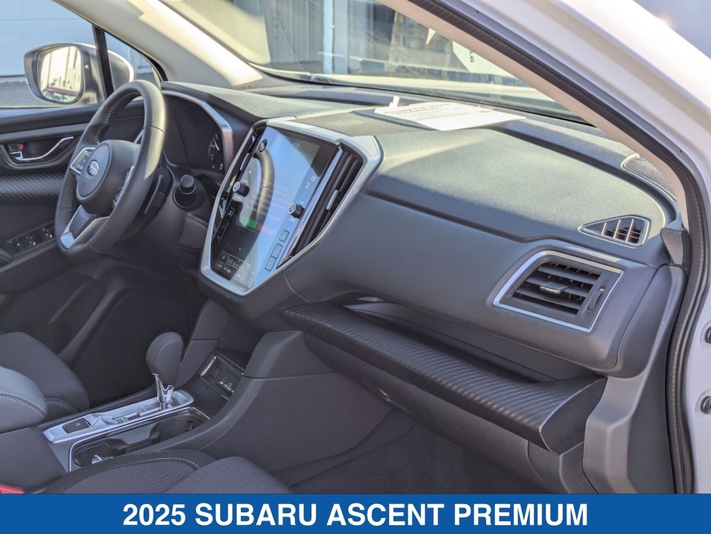 Crystal White Pearl 2025 Subaru Ascent Premium AWD Lineartronic CVT 2.4L 4-Cylinder DOHC 16V Ascent Premium, 4D Sport Utility, 2.4L 4-Cylinder DOHC 16V, Lineartronic CVT, AWD, Crystal White Pearl, Black Cloth.