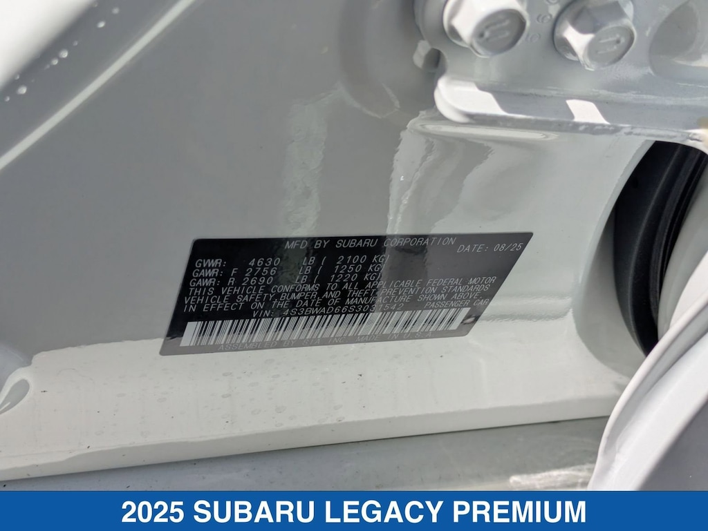 Crystal White Pearl 2025 Subaru Legacy Premium AWD Lineartronic CVT 2.5L 4-Cylinder DOHC 16V Legacy Premium, 4D Sedan, 2.5L 4-Cylinder DOHC 16V, Lineartronic CVT, AWD, Crystal White Pearl, Slate Black Cloth.
