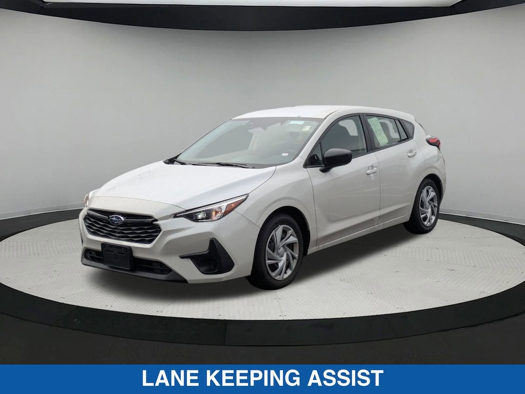 Crystal White Pearl 2025 Subaru Impreza AWD CVT Lineartronic 2.0L DOHC 4D Hatchback, 2.0L DOHC, CVT Lineartronic, AWD, Crystal White Pearl, Black Cloth.